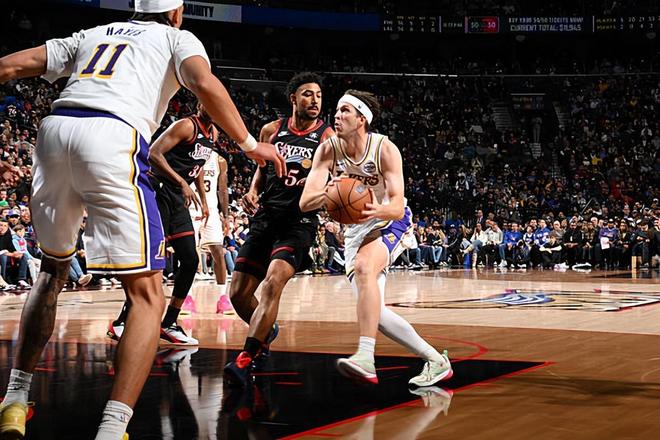 本场比赛中,湖人的先发后场球星奥斯汀-里夫斯(Austin Reaves)的表现实在是糟糕透顶,完全没有发挥出自己的特点。里夫斯全场出场39分08秒,投篮16中3,三分线外6中2,罚球5中3,得到了11分4篮板5助攻1抢断1盖帽的数据,还有2次失误,正负值为+1。里夫斯在进攻端的效率简直是惨不忍睹,他得到了大量的出场时间和出手次数,他在场上的球权并不少,然而他的进攻效率却如此糟糕,确实是无法令人感到满意的,也是远远低于他本人的正常水准的。里夫斯在其他方面的能力比较有限,也同样没有办法起到更大的作用。不夸张地说,如果里夫斯能够正常发挥,能够保持稳定的手感,湖人在本场比赛中应该是能够更加轻松顺利地拿下胜利的,结果他完全没有做到这一点,球队最终也是经历了各种波折才在最后时刻锁定了这场胜利。